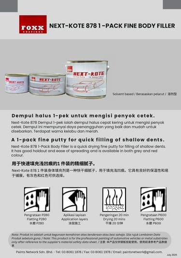 Cat tampal berperanan meningkatkan kalis bunyi atas besiUnderseal 0664 adalah cat tampal perlindungan untuk besi. Ketebalan cat ini menolong mengurangkan bunyi. Sealer to aid sound proofing on metal Underseal 0664 is an air drying protective sealer designed for metal surfaces. Its high build helps reduce noise 金属隔音底漆 Underseal 0664 是一种用于金属表面的风干型保护底漆。高厚度涂层有助于降低噪音, 同时提供额外的防护层。